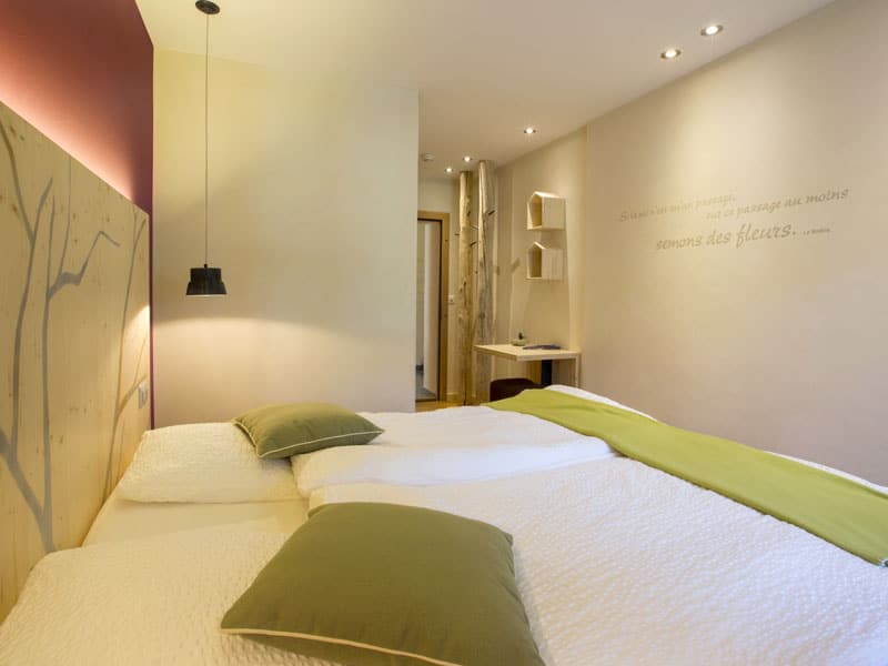 Lit d’appoint pour 2 à 12 ans : 30 CHF, petit déj inclus (sur demande, seulement dans certaines chambres)